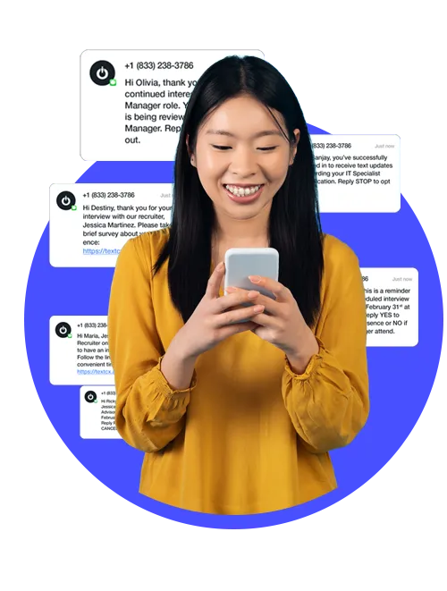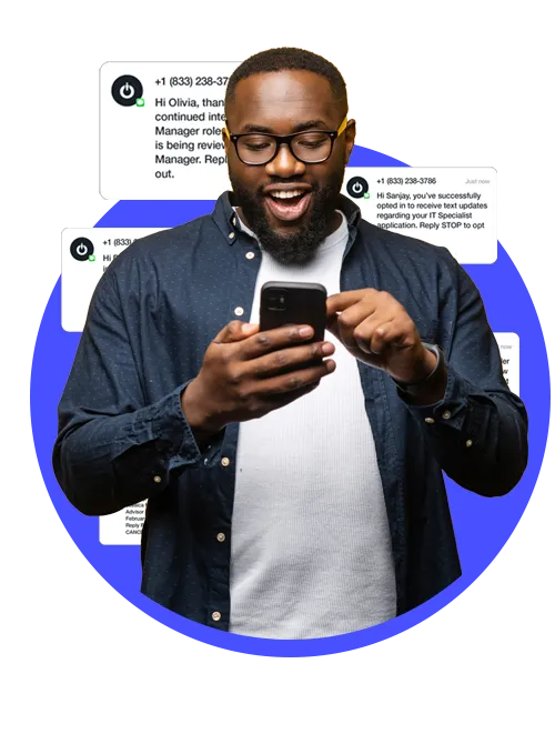 Receive text messages related to your application including interview invitations and requests for feedback.